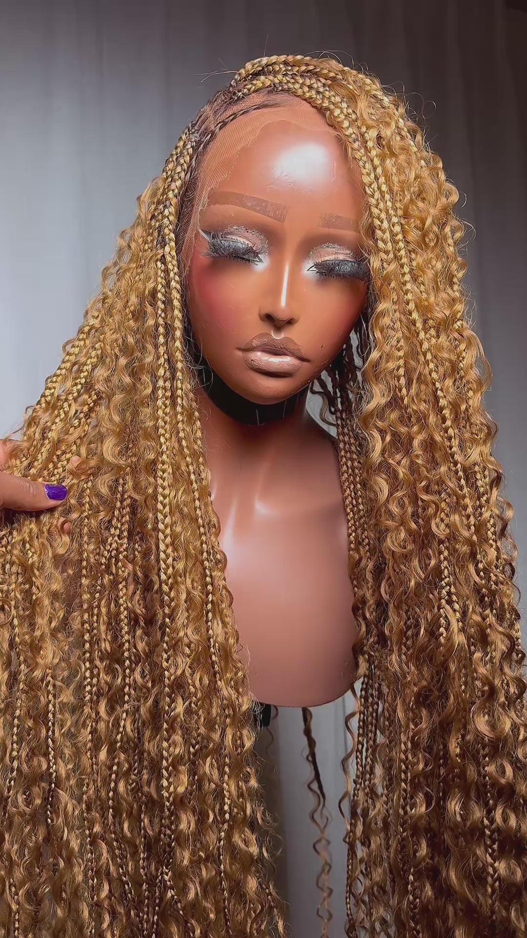 "Lina" French Curls HD Full Lacefront Braided Wig - Golden Ombre