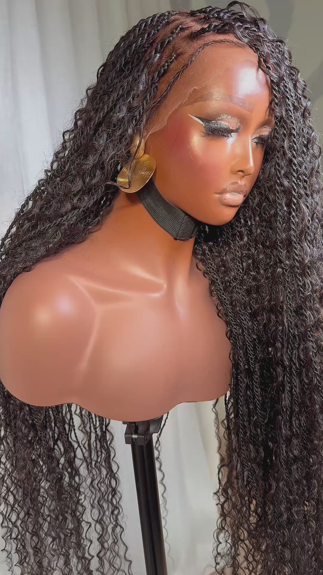 "Lina" French Curls HD Full Lace Braided Wig - Black