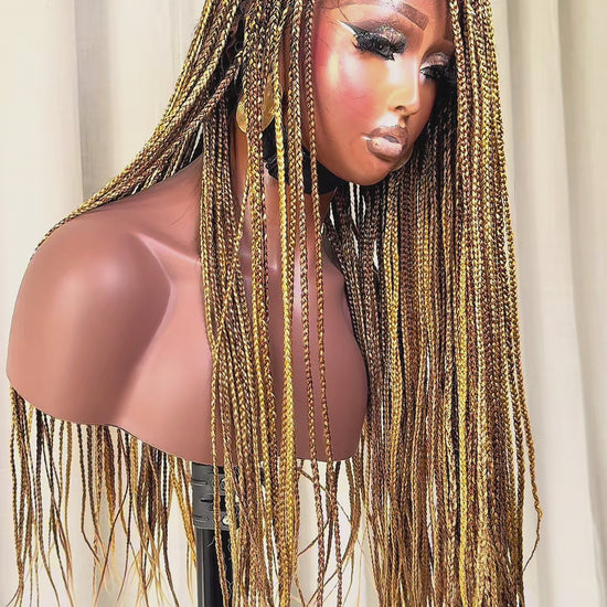 "Kimmy" 24" HD Full Lace Medium Knotless Box Braided Wig - Blond Mix